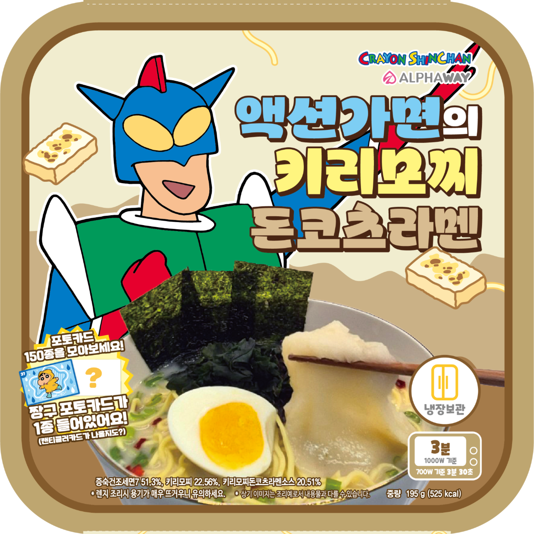 짱구가 즐겨먹는 간식 키리모찌가 들어간 간편하게 먹는 키리모찌 돈코츠 라멘 입니다. 짱구 포토카드도 함께 즐기세요.